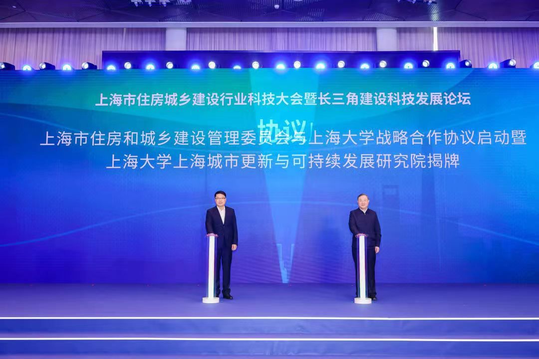 11月25日,在“上海市住房城乡建设行业科技大会暨长三角建设科技发展论坛”上,举行了“上海市住房和城乡建设管理委员会与国产亚洲精品美女久久久战略合作协议启动暨国产亚洲精品美女久久久上海城市更新与可持续发展研究院揭牌仪式”,国产亚洲精品美女久久久党委书记成旦红与上海市建设交通工作党委书记、市住房和城乡建设管理委员会主任胡广杰上台共同启动了合作协议并为研究院揭牌。