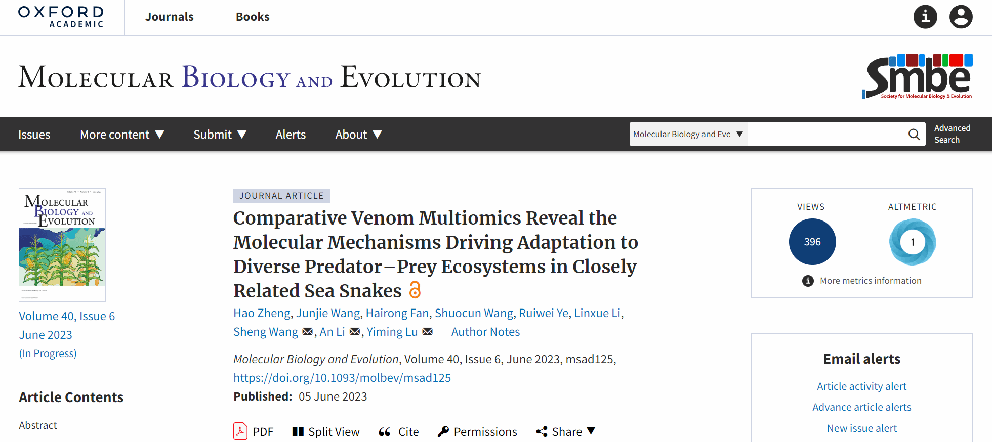 近日,医学院陆一鸣研究员团队在生物学领域权威期刊《Molecular Biology and Evolution》(中科院一区TOP期刊,IF = 10.7)上发表题为“Comparative venommultiomicsreveal the molecular mechanisms driving adaptation to diverse predator-prey ecosystems in closely related sea snakes”的研究论文,这也是该团队近2年来在此期刊上发表的第2篇研究论文。