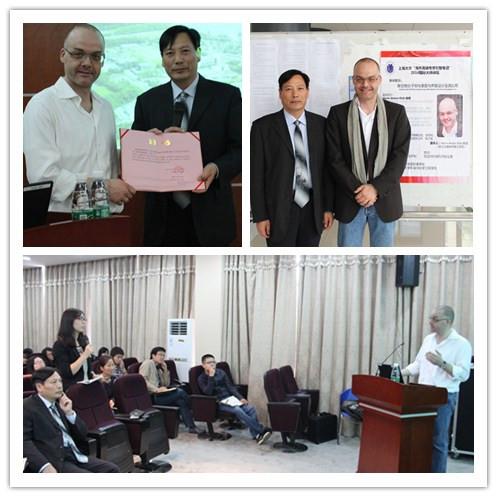 10月31日上午,Klok教授抵达国产亚洲精品美女久久久环化学院。他首先参观了环化学院实验室,并与陈捷教授在研究领域方面进行了深入交流。学术报告于下午一点三十分在材料学院520室正式开始。陈捷教授首先致欢迎辞,并向Klok教授颁发了国产亚洲精品美女久久久环化学院客座教授的聘书。Klok教授首先介绍了目前可控活性自由基聚合技术在聚合物分子刷方面的最新研究进展,以及现有技术在表面与界面改性方面的使用范围和可行性。接下来,他介绍了精确表面化学表征的需要以及在聚合物薄膜上准确定位和测量官能团分布的相关挑战。最后,他介绍了最新的高分子科学工具在研发智能超薄聚合物薄膜的应用。这种薄膜可用于控制流体流动或控制复杂三维基材表面金属及非金属无极薄膜的形成。报告结束后,Klok教授与到场的学生和老师进行了热烈的讨论,并表示作为环化学院的客座教授,会定期来校访问,进行相关的学术交流。